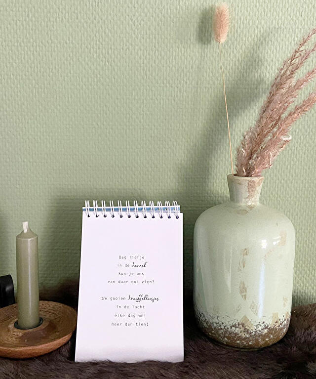 Het bundeltje bevat lieve en korte gedichtjes, geschreven vanuit het hart. Door de ringband kan je het boekje rechtop zetten.